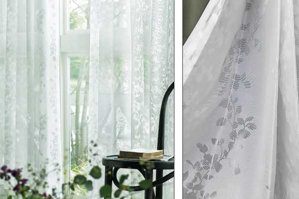 透けにくい織り方や繊維をつかって、通常よりプライバシー性を高めたレースカーテンです。